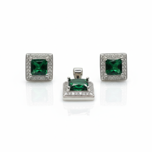 GREEN STONE CZ SQUARE 925 SILVER PENDENT SET