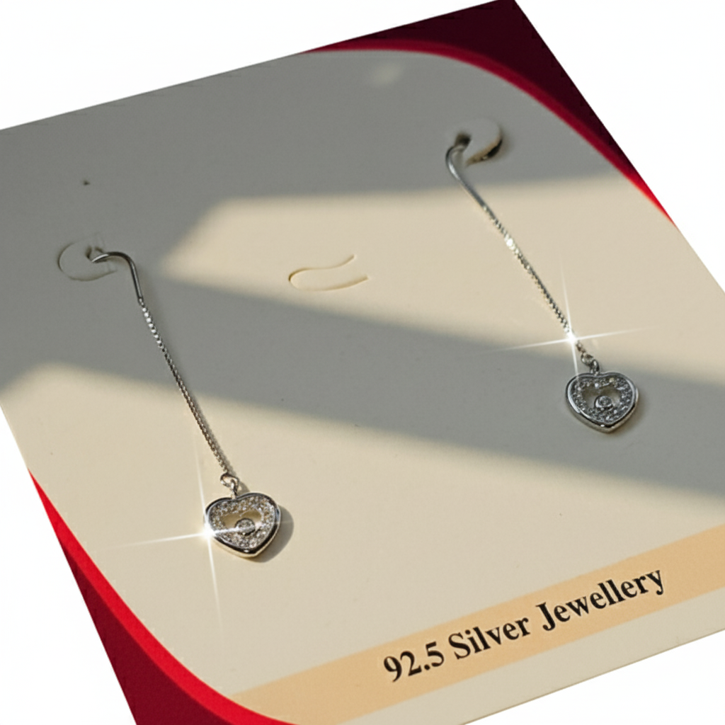 Add a touch of elegance and charm to your look with these stunning 925 Pure Silver Heart Hanging Earrings. Crafted from premium sterling silver, these earrings feature delicate heart-shaped designs that dangle gracefully, reflecting light with every movement. The sleek, polished finish enhances their timeless appeal, making them a versatile accessory for any occasion.