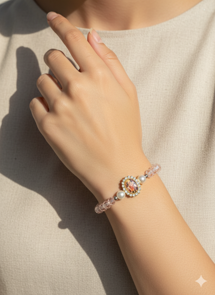 “Divine beaded wristband adorned with rich beads and a touch of elegant silver, perfect for spiritual balance and style.”