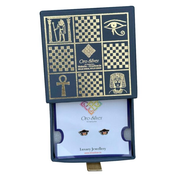 Express your bold and playful side with these unique winged bow earrings, crafted from high-quality 92.5 sterling silver. The sleek black wing-like design is accented with a soft pink enamel bow at the center, offering a subtle mix of edginess and charm. Lightweight and comfortable, these studs are perfect for everyday wear or to add a quirky twist to your casual outfits.