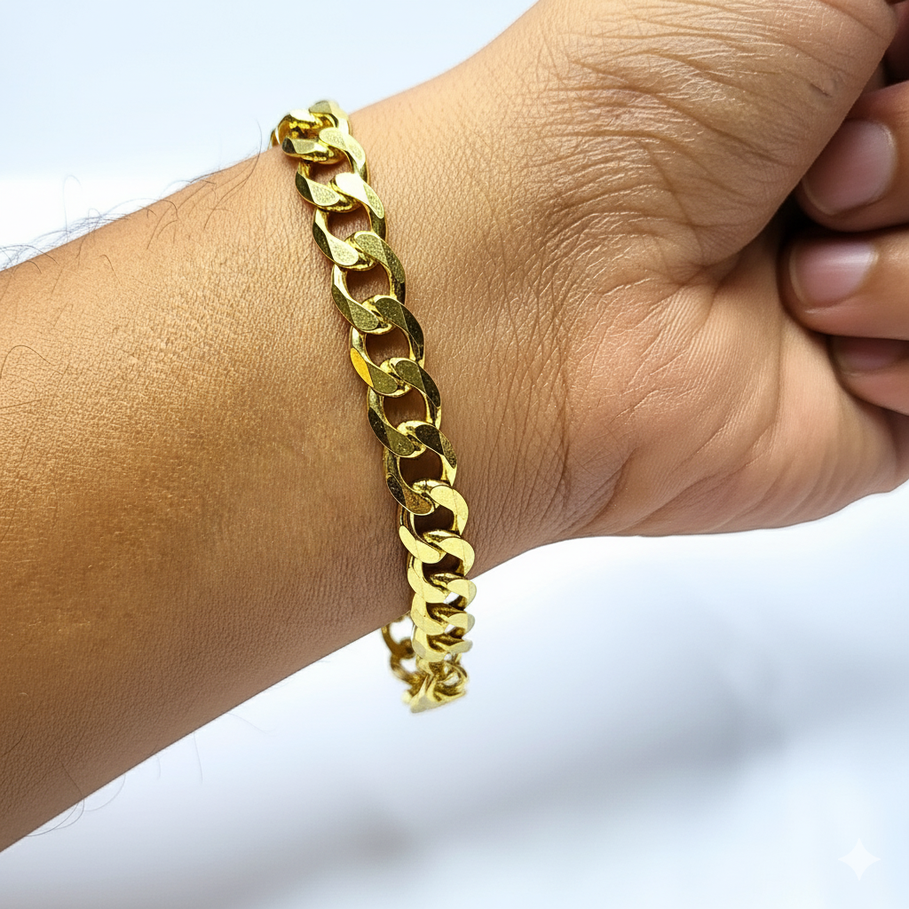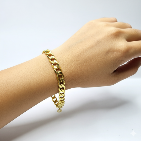 - Design: This bracelet features a sleek and masculine design, with clean lines and a bold structure that exudes confidence and style. The polished golden finish adds an element of luxury, while the sturdy silver base ensures durability and lasting shine.