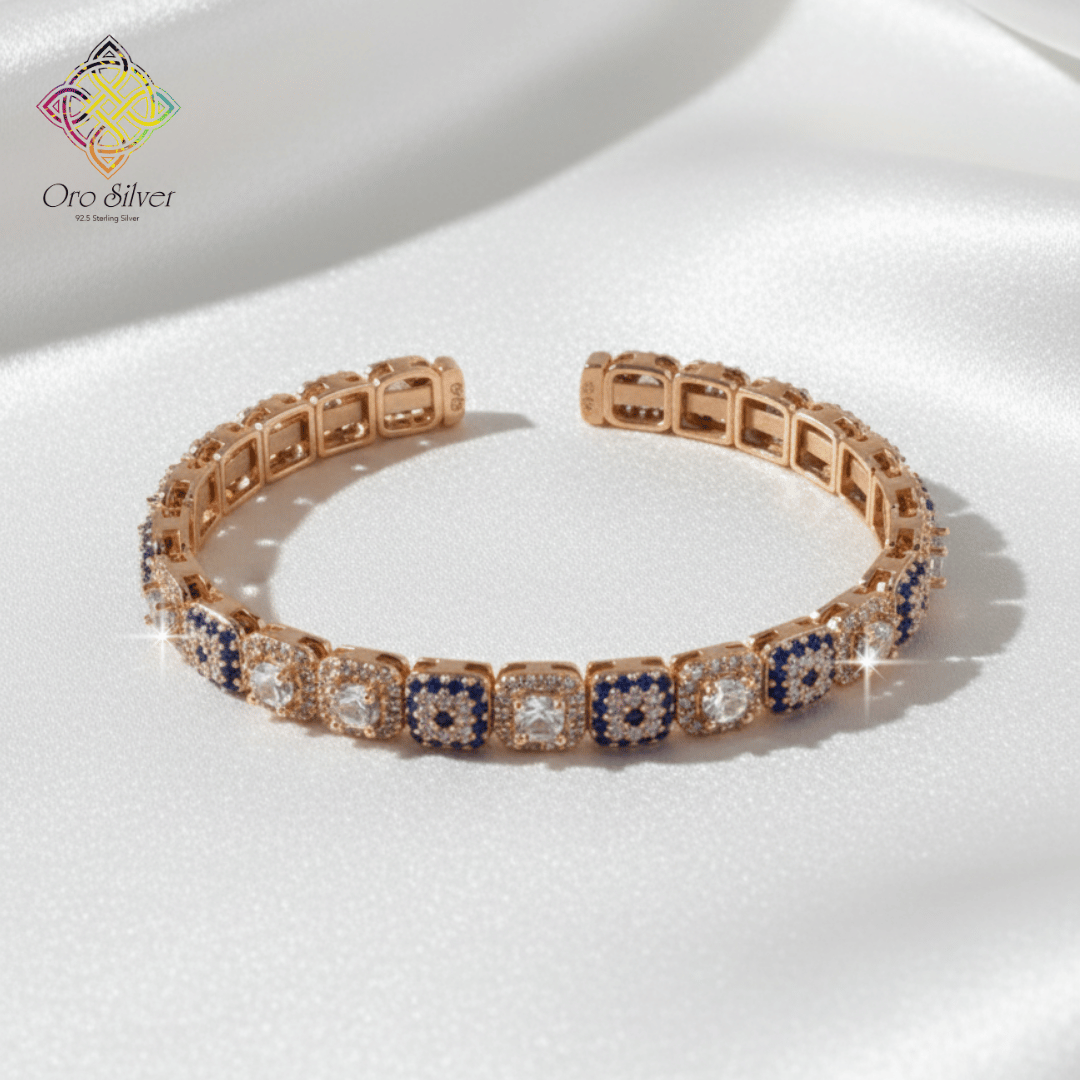 Design Type: Open-ended, Adjustable Bangle or Cuff style with a link-chain appearance.